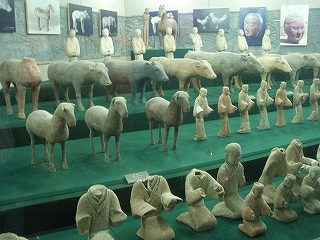 「漢の兵馬俑」と言われている漢陽陵の見学。「裸の兵馬俑」ともいわれている。それは、人の埴輪が裸の状態なのである。もともと衣服を本来の布で着せていたため、長い年月でなくなってしまったのである。また衣服を着せるため人の腕の部分は木製で作っていたが、腐ってなくなっており腕のない裸の着せ替え人形という感じであった。
