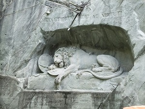 ☆ライオン像:この像は、1792年に勃発したフランス革命の際、フランスのルイ16世とマリー・アントワネットを守るために最後まで勇敢に戦って命を落としたスイス兵を讃えて、1821年にデンマークの彫刻家、トルバルセンによって制作されたものである。