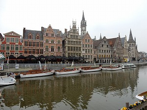 まず、ブルージュと同様に中世の姿が残る古都ゲントへ。有名な宗教画「神秘の子羊」が飾られている聖バーフ教会や聖ミハイル橋やグラスレイなどを徒歩で見学した。残念ながらその絵は現在修復中でレプリカが置かれていた。