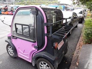 ![]() バイク販売店で2人乗り電気自動車販売! |