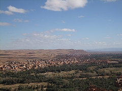 トドラ渓谷へ行く途上、ティネリールの景色がとてつもなくすばらしかtった。映画のシーンに出てくるような風景であった。グランドキャニオンのような山を背景にしながら角ばった古い家々が密集した街並み、その前に緑の林が茂る。天気も晴天で最高の大パノラマであった。そしてトドラ渓谷に着いた。高さは約300m。山からの透き通った清浄な水が流れていた。乾燥した地域が多いと思っていたモロッコで清流を見たことは驚きであった。そういう意味でモロッコは地学や地質学の研究には最適の国ではないだろうか。変化にとんだ地形に研究者でなくとも魅了される。その後、ワルザザードへ向かう。